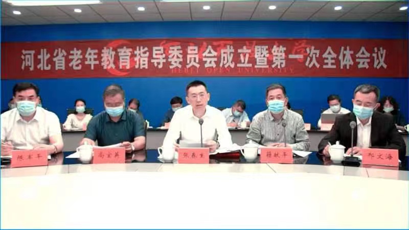 5月20日上午河北省老年教育指導委員會成立暨第一次全體會議在我校雙向視頻會議室舉行。會議采用線上線下相結合的形式進行。省教育廳副廳長張春生出席會議并講話。省教育廳職業教育與成人教育處(老年教育處)副處長邢文海主持會議。