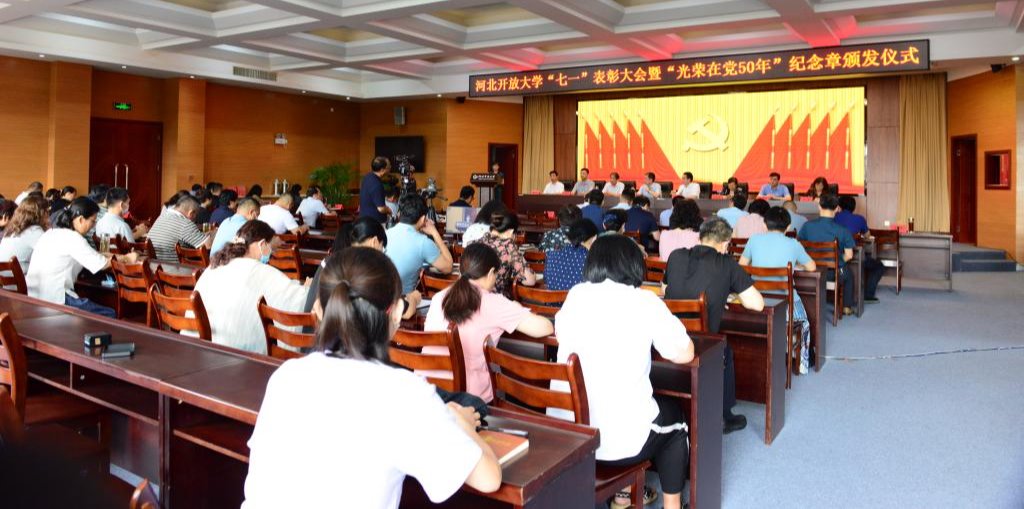 6月30日上午,我校舉行“七一”表彰大會暨“光榮在黨50年”紀念章頒發儀式。校領導班子全體成員出席會議。處級及以上干部、副高級及以上職稱人員、2021年度優秀共產黨員在主會場參加會議,其他黨員在分會場同步收看大會實況。黨委副書記、校長段潤保主持會議。