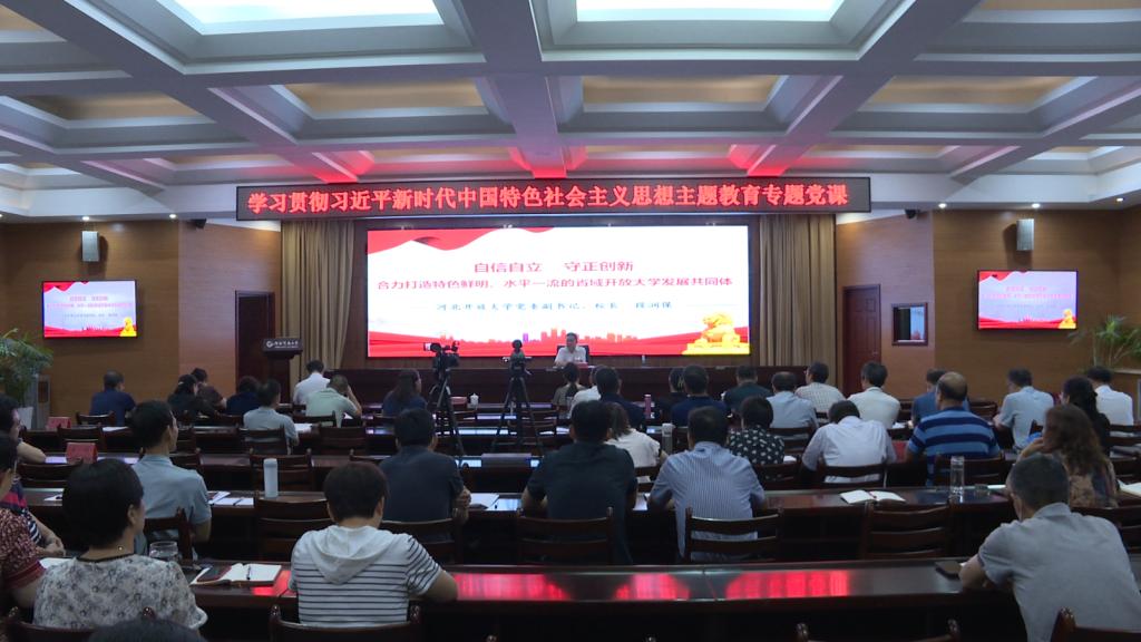 7月5日上午,我校舉行學習貫徹習近平新時代中國特色社會主義思想主題教育專題黨課,并對年度優秀共產黨員進行表彰。學校黨委書記、學習貫徹習近平新時代中國特色社會主義思想主題教育領導小組組長籍獻平以“學思想 促踐行 展作為 持續推動主題教育在開放大學走深走實”為題,學校黨委副書記、校長,學習貫徹習近平新時代中國特色社會主義思想主題教育領導小組副組長段潤保以“自信自立 守正創新 合力打造特色鮮明、水平一流的省域開放大學發展共同體”為題,分別向全體黨員講授主題教育專題黨課。