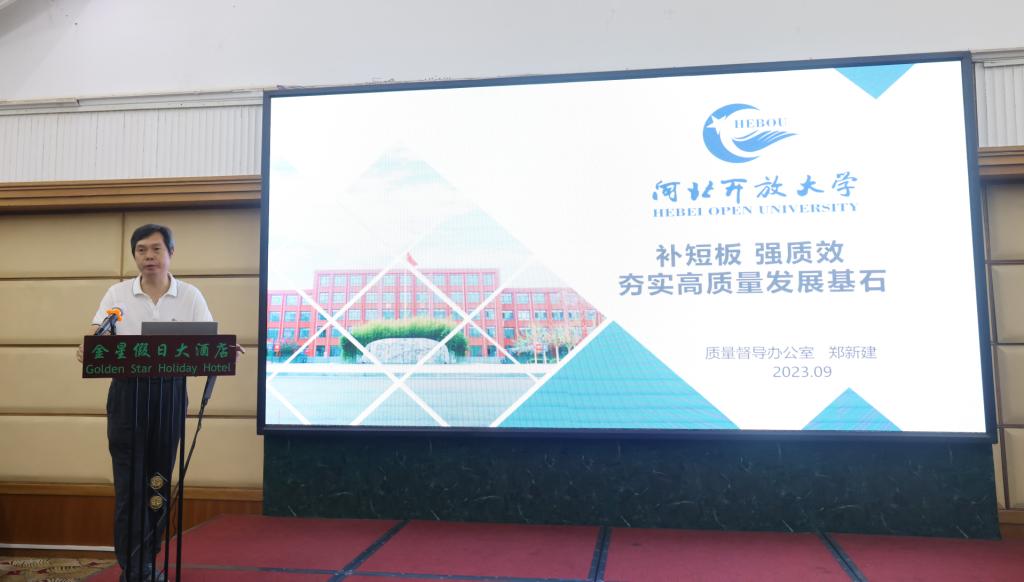 籍獻平發表題為《高質量發展背景下大力推動開放大學一體化辦學共同體建設》的講話指出,在開放大學高質量發展背景下,質量督導工作對推動一體化辦學共同體建設有著重要意義,對體系形成統一的辦學標準、探索一體化辦學模式等方面發揮著重要的推動作用。籍獻平強調,縣級開放大學是開放大學體系辦學根基,是實現河北開放大學一體化辦學共同體建設的關鍵一環。籍獻平對本輪星級評價工作取得的成效給予了充分肯定,并高度贊揚在星級評價中獲評五星、四星的縣校,能夠直面問題、克服困難、積極促建,使學校辦學條件和辦學水平得到顯著提升;同時鼓勵其他縣校要堅守教育情懷,認真學習五星縣校的先進經驗,找準差距、迎頭趕上。籍獻平指出,這次質量督導工作業務活動是體系更名后舉辦的一項非常重要的活動,對研究更名后體系如何高質量發展具有重要意義,希望各位代表共同分析研究體系一體化建設中存在的問題,共商解決對策,對一體化辦學共同體建設建言獻策。